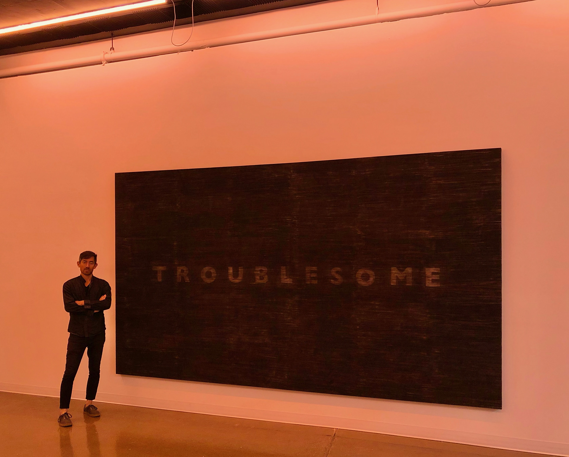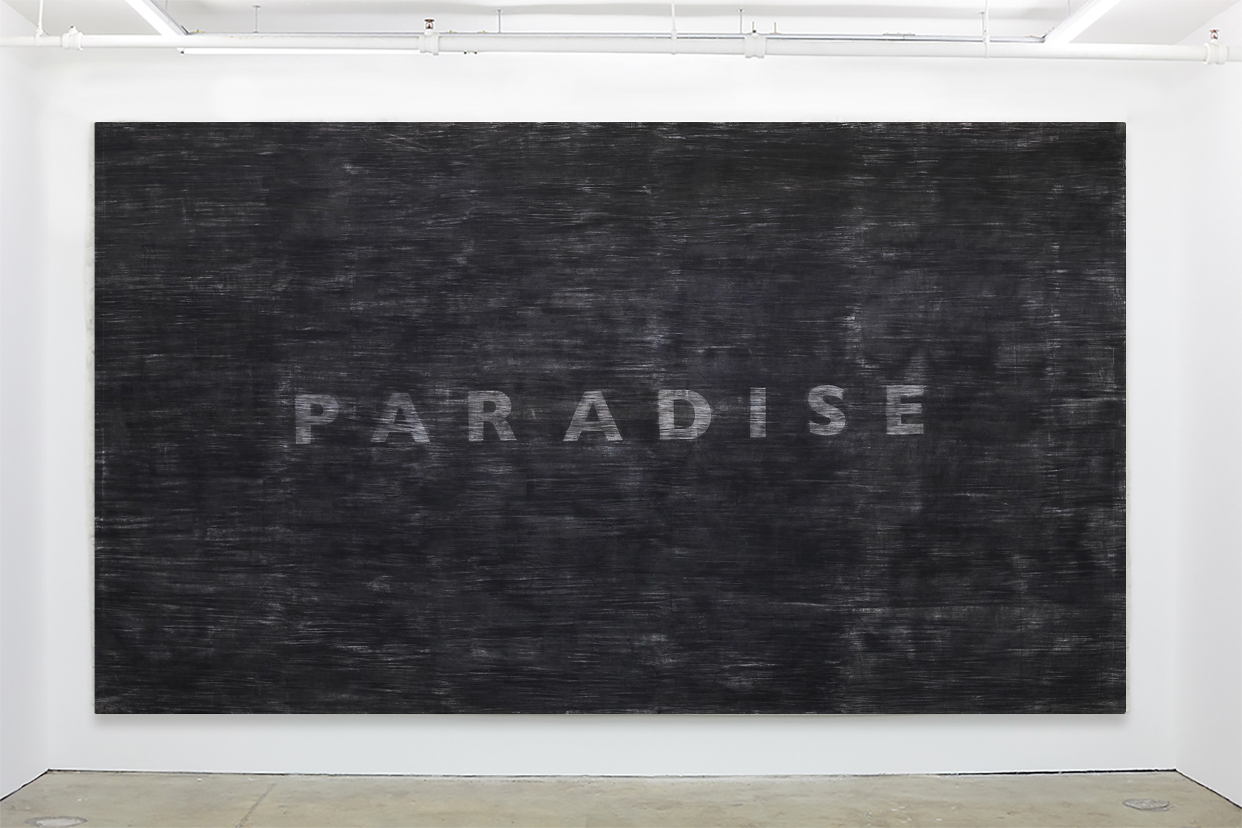 These pure black expanses of soot aren’t really meant to be aesthetic or pictoral endeavors as much as to conceptually inhabit the lineage of landscape painting, representing spent/wrecked vistas and places— rather than pristine wilderness—by way of being stretched, landscape-oriented objects. The paradises depicted by the romantics were both harbingers of the consequences to follow and denials of the ensuing realities of colonization and settlement. The iconic landscapes of the west have been permanently parceled, altered and scarred which begs the question of whether our notions of pristine wilderness or paradise ever existed at all. Smelling of smoke and shedding ash, I think of these as landscape paintings of new American West, and overwhelming visualizations of a large-scale systems change.